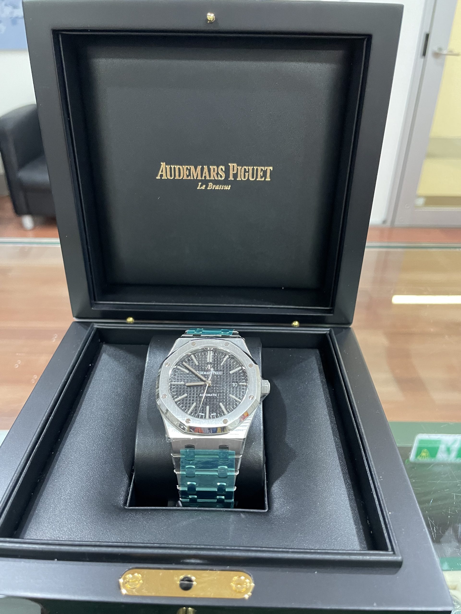 Modern, minimalist stainless steel, with integrated bracelet and hallmark octagonal bezel. Beneath the black “Grande Tapisserie” dial beats the Manufacture calibre 3120.