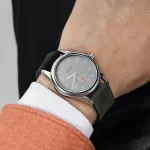 Manual watch with stainless steel case and case back, domed sapphire crystal glass; galvanised, grey dial, Arabic and Roman numerals, indexes with beige superluminova (blue luminescence); rhodium-plated hands with superluminova inlay in white (blue luminescence), second hand neon orange.